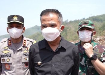 ERASUMBU.COM: Penjabat Gubernur Jawa Barat Bey Machmudin mengecek lapangan kondisi terakhir TPA Sarimukti, di Kabupaten Bandung Barat, Selasa (12/9/2023). Monitoring...